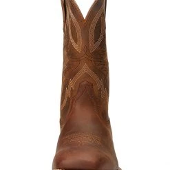 - AriatĀ® Amos features a classic square-toed western style boot, boasting all over embroidered design with pull on tabs for easy entrance and exit.