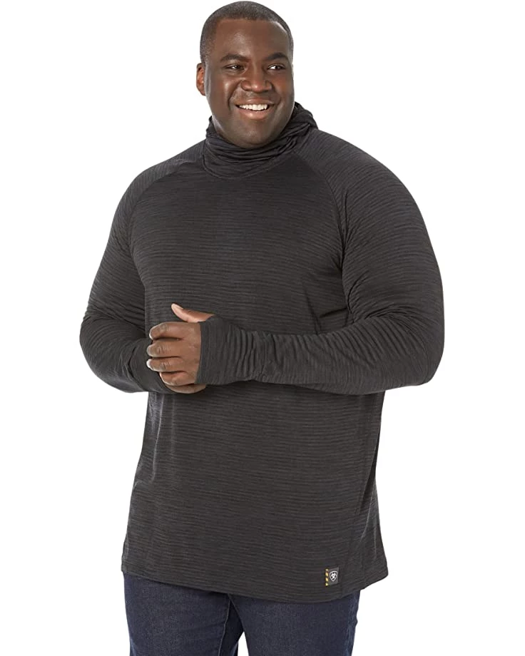 - Keep warm while you work wearing the Ariat® Big & Tall Rebar Gridwork Balaclva Long Sleeve Base Layer showcasing a hooded construction with integrated face shield and long sleeves with thumbholes.